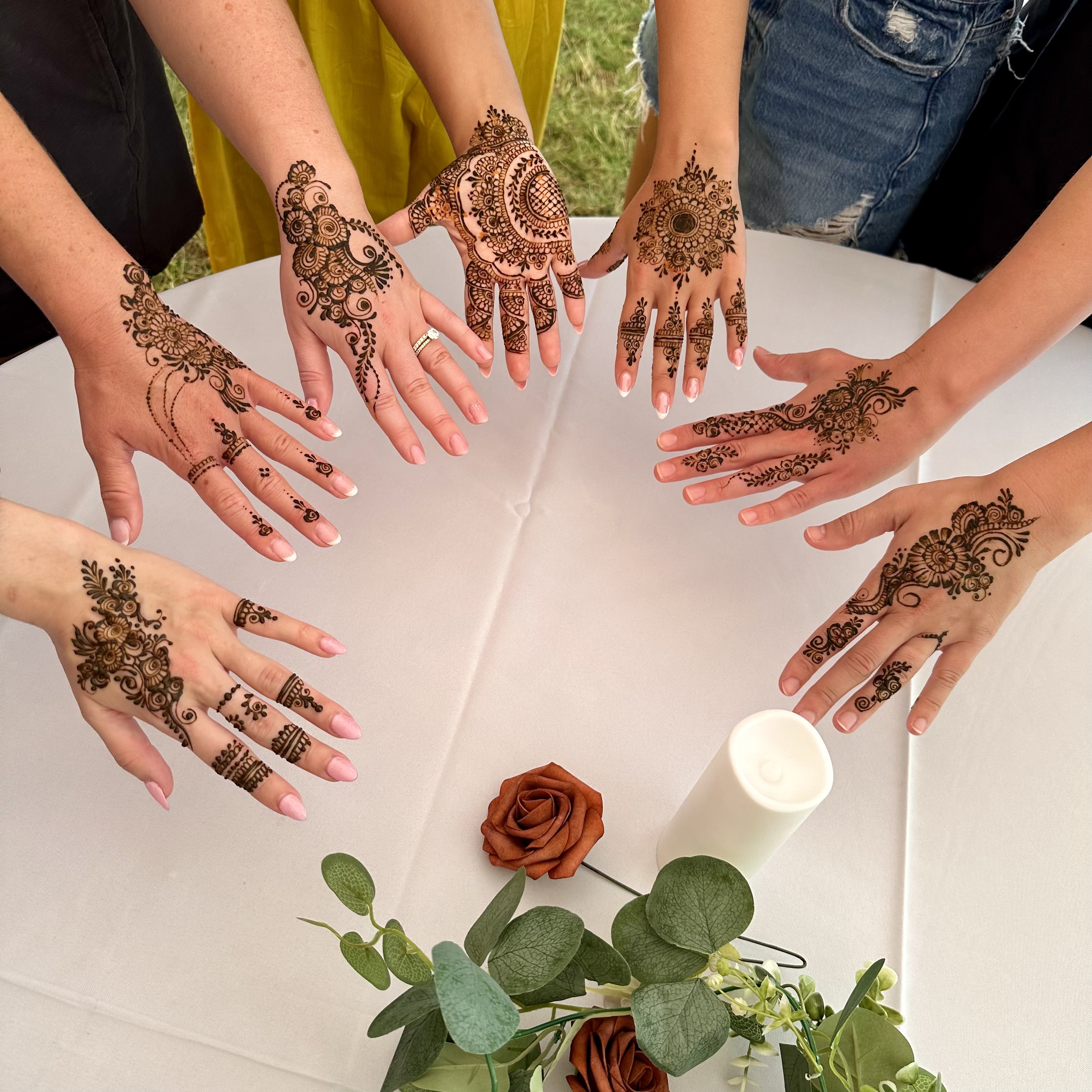 We do various events/festivals and offer a variety of styles for individual, group, bridal, or just simple henna. We do not charge for consultations and give free estimates. We can customize the price range for your needs with hourly and/or flat rates.